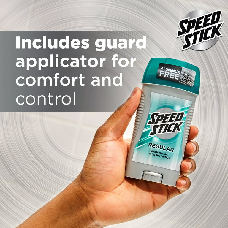 Feel clean, masculine and confident with Speed Stick Deodorant for Men, Regular scent. This odor-fighting formula provides 24 hour freshness for maximum confidence. This Speed Stick men’s deodorant includes a comfort guard applicator for comfort and control. This solid stick deodorant for men is aluminum free. The classic scent of Speed Stick Men’s Deodorant, Regular scent, will help you smell fresh and confident all day. Speed Stick Men’s Deodorant is aluminum free and provides all day freshness. With a 24 hour odor fighting formula, this deodorant for men will help you feel great and smell fresh all day. Feel confident to take on the day.
